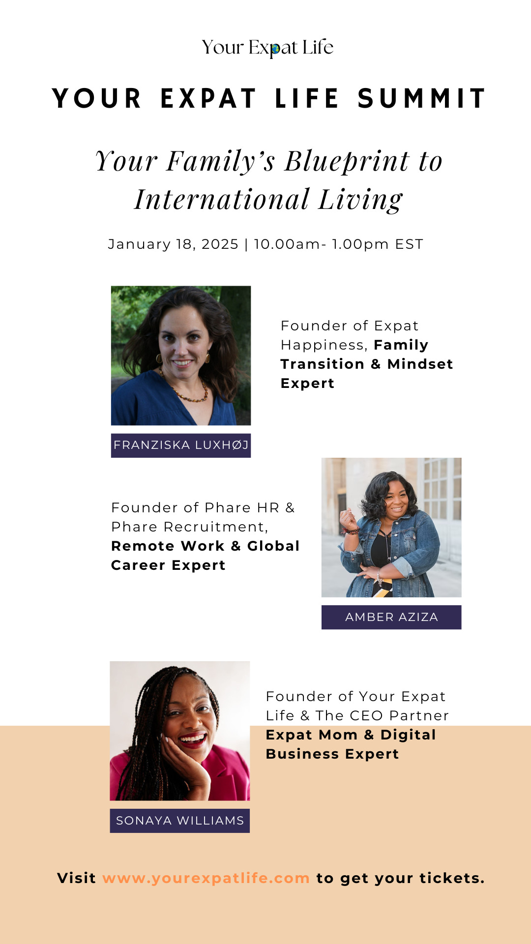 I'm thrilled to be hosting this summit alongside incredible experts like Amber Aziza and Franszika Luxhøj, who'll share their insights on creating successful lives abroad.