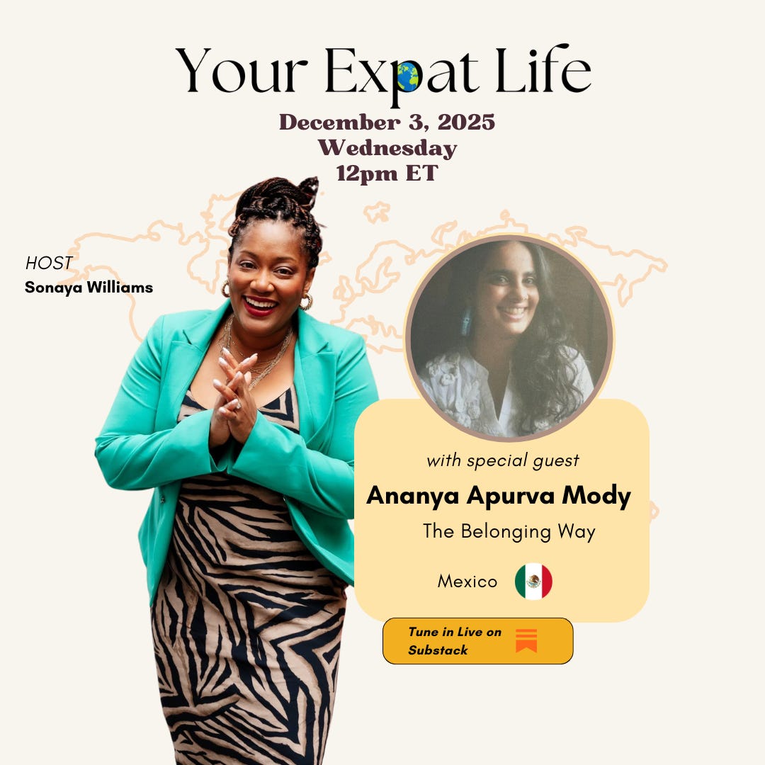 On this episode of Your Expat Life LIVE, host Sonaya Williams sits down with Ananya Apurva Mody of The Belonging Way. Ananya shares her journey through relocation and reinvention—how movement, culture, and identity shaped her view of home, belonging, and self.