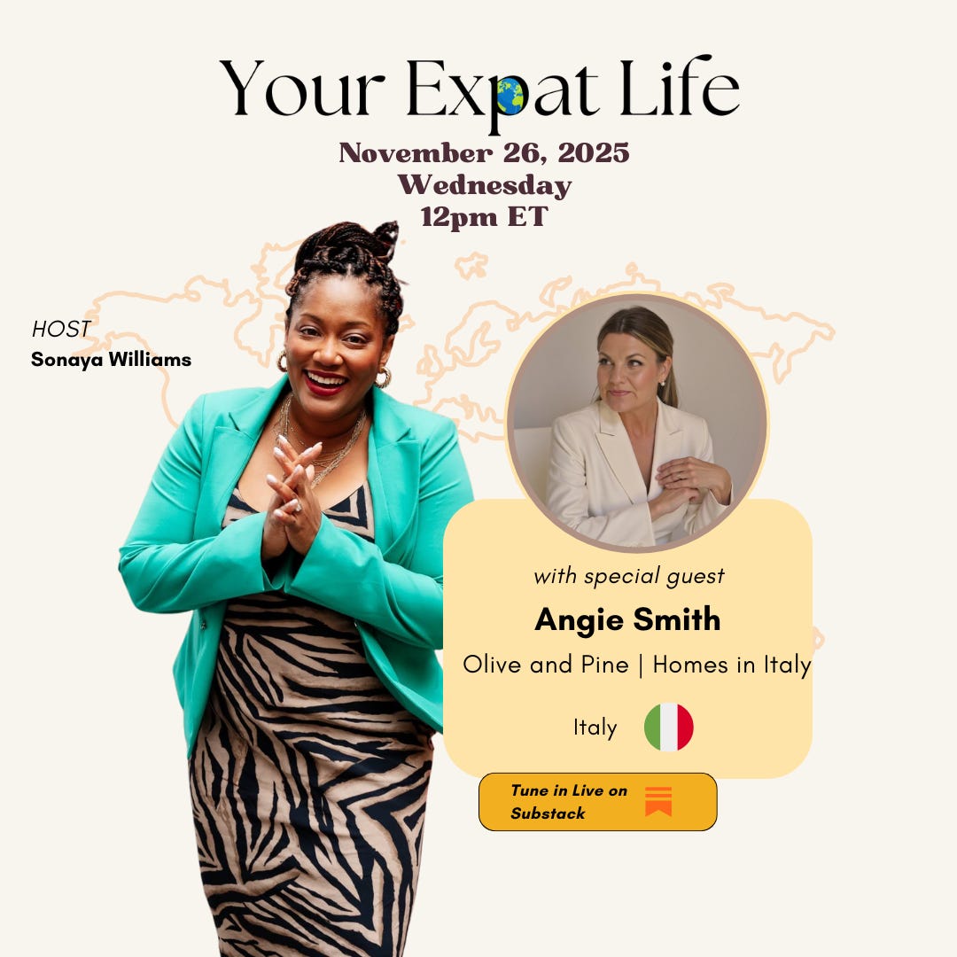 On this episode of Your Expat LifeâŻLIVE, host SonayaâŻWilliams sits down with AngieâŻSmith to uncover how she left her familiar life in the U.S., found herself in Italy, and began a new chapter focused on place, intention, and possibility.